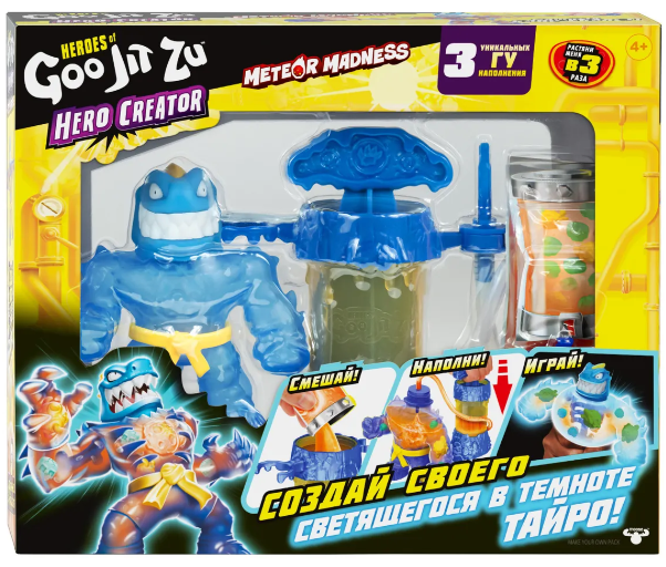 Встречай Тайро из набора Создай своего героя GooJitZu Метеор Мэднесс! После падения загадочного метеорита на вселенную Гу обрушилась новая угроза, и только команда героев способна остановить разрушительную атаку врагов. Теперь ты можешь создать своего героя и спасти мир Гу!