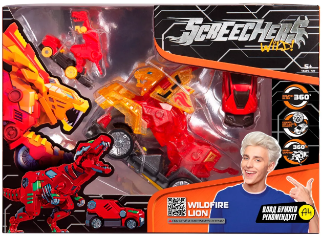 В команде скричеров LEVEL 3 новый герой – минискричер! Усиль свой баттл еще одной трансформацией! Скричер LEVEL 3 делает кувырок на 360° и совершает трансформацию.  Теперь можно самостоятельно выбирать элемент трансформации. Усиленный скричер-диск 4 сезона или скричер-кар для продолжения баттла в гонке, а также минискричер! Он тоже делает кувырок на 360° и трансформируется без помощи диска. Машинка-трансформер Вайлдфаер Лайн превращается в саблезубого льва! Устрой баттл – стань крутым скричером!В набор входит машинка-трансформер (после трансформации: 14х8х12 см), энергетический диск, скричер-кар, минискричер, карточка модели. Игрушка упакована в коробку с окном (18х10х25 см). Играть со Скричером можно где угодно, никаких дополнительных приспособлений не требуется. Машинка-трансформер выполнена из высококачественного материала, товар сертифицирован. Эксклюзивный дистрибьютор бренда “Дикие Скричеры” на территории РФ – компания “РОСМЭН”.
